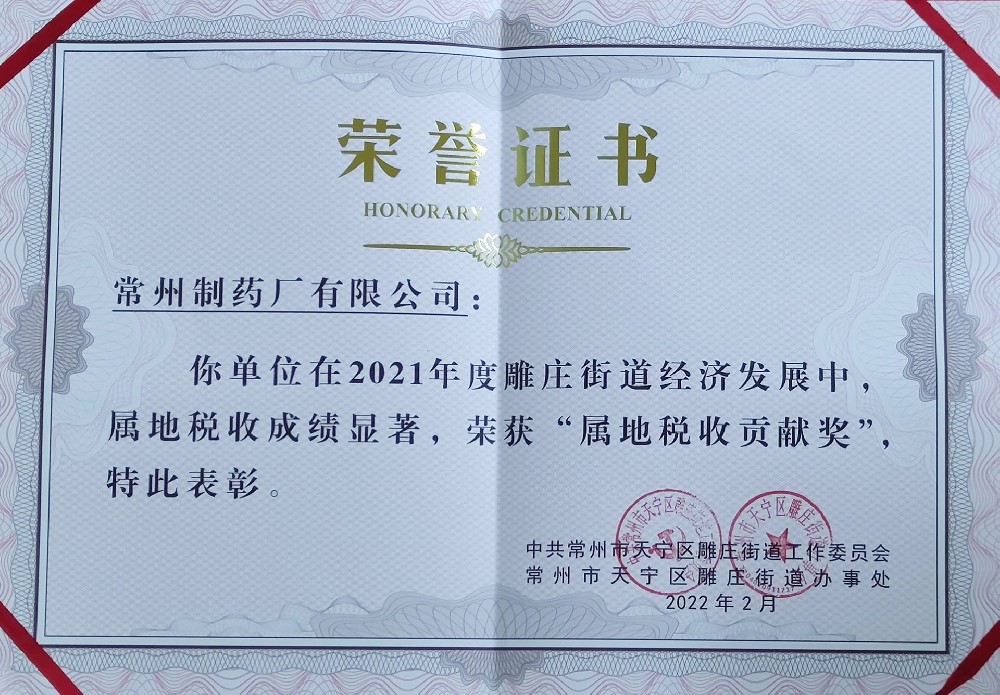 天寧區(qū)街道頒發(fā)重大貢獻(xiàn)獎(jiǎng)