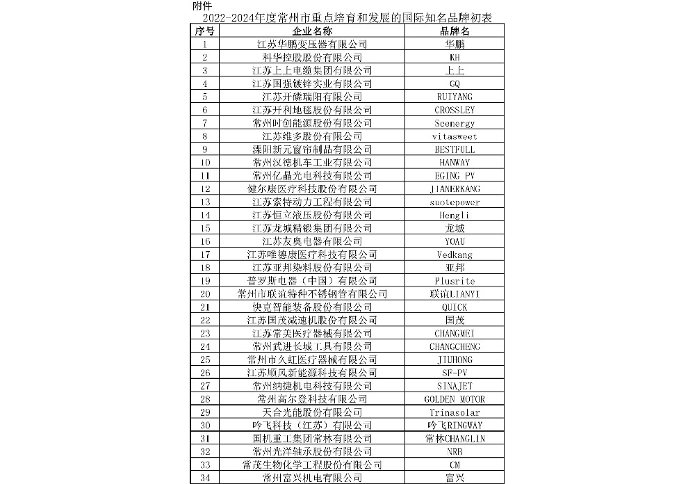 關(guān)于2022-2024年度常州市重點(diǎn)培育和發(fā)展的國際知名品牌評選結(jié)果的公示